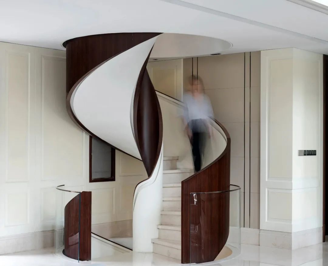說超樓梯界的顏值擔當,不得不提的就是"旋轉(zhuǎn)樓梯"。作為空間連通的樞紐,靈動朝選、宛若舞動著的紐帶 不僅完美的符合其本身的功能性,還成為了空間的一部分甚至是焦點,給予空間超乎想象的視覺美感,